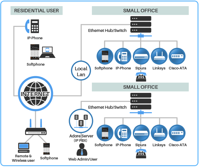 Adore Infotech has moved a step forward and replaced the traditional Private Branch Exchange (PBX), which is a small telephone switch, with the IP PBX System. Among the range of VoIP Solutions that Adore Infotech offers, the IP PBX system that it offers, is one of the easiest to setup and maintain. Adore Infotech’s IPPBX system enables comfortable integration with the existing telecommunication system such as PRI, analogue, and GSM.